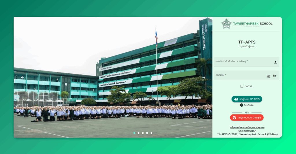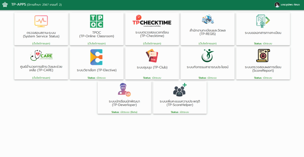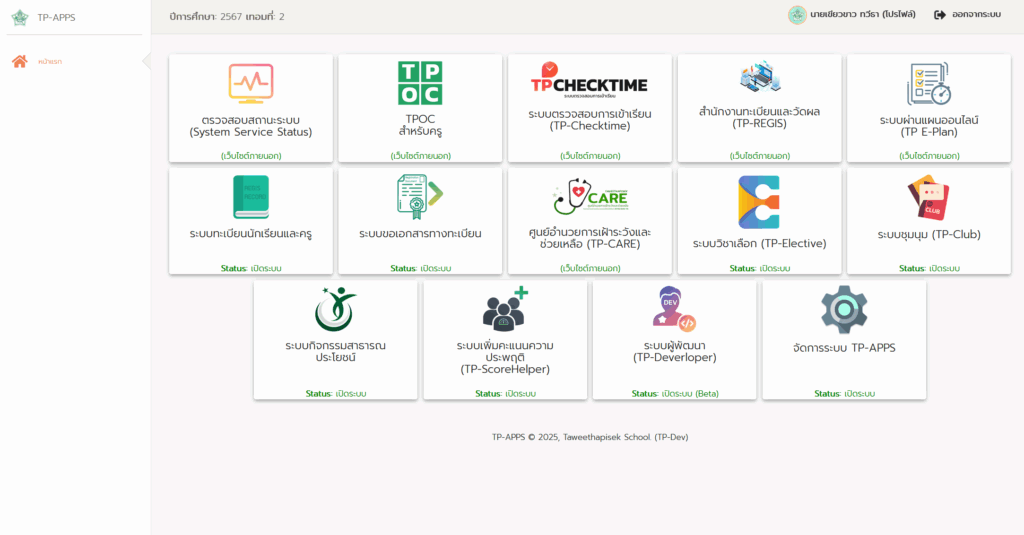 ศูนย์รวมรวม Apps โรงเรียนทวีธาภิเศก โดยภายในจะเป็น แพลตฟอร์มดิจิทัลสำหรับโรงเรียนทวีธาภิเศก ที่พัฒนาเพื่อรองรับการบริหารจัดการข้อมูลของนักเรียนในหลากหลายด้าน ระบบนี้รวมฟังก์ชันหลัก เช่น ระบบลงทะเบียนชุมนุม ระบบติดตามกิจกรรมจิตอาสา ระบบลงทะเบียนวิชาเลือก และระบบขอเอกสารทางทะเบียนออนไลน์ ช่วยให้ครูและเจ้าหน้าที่สามารถจัดการข้อมูลนักเรียนได้ง่ายขึ้น ลดภาระงานด้านเอกสาร และช่วยให้นักเรียนสามารถดำเนินการต่าง ๆ ได้สะดวกผ่านแพลตฟอร์มเดียว