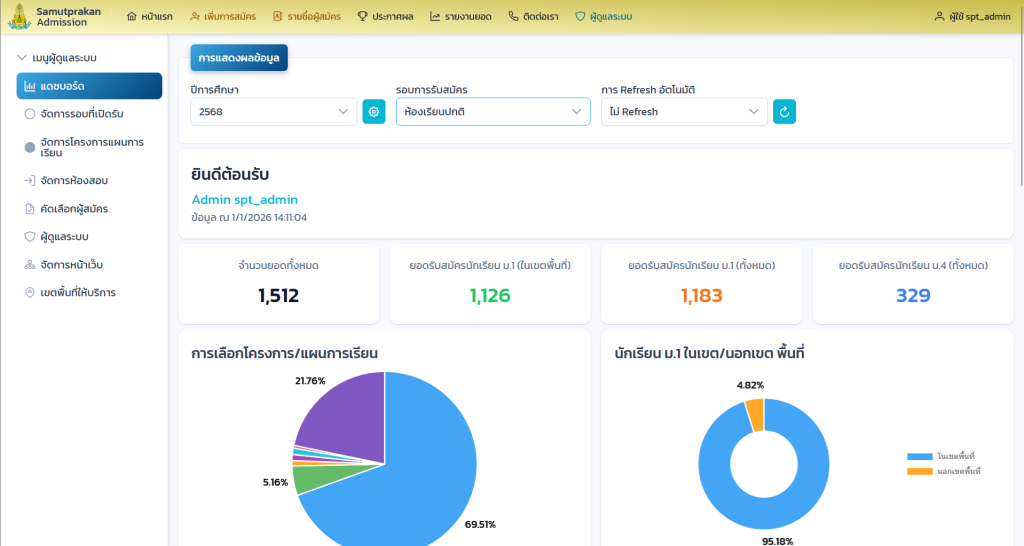 ระบบรับสมัครนักเรียนออนไลน์ที่ช่วยให้กระบวนการรับสมัครนักเรียนเป็นไปอย่างสะดวกและมีประสิทธิภาพ ผู้สมัครสามารถกรอกข้อมูลเบื้องต้นผ่านแพลตฟอร์มออนไลน์ ลดภาระงานด้านเอกสารของเจ้าหน้าที่ ฝ่ายตรวจสอบข้อมูล สามารถตรวจสอบสถานะการสมัคร (ปัจจุบันระบบ Redesign Version 2 สวยงามน่าใช้ยิ่งขึ้น)