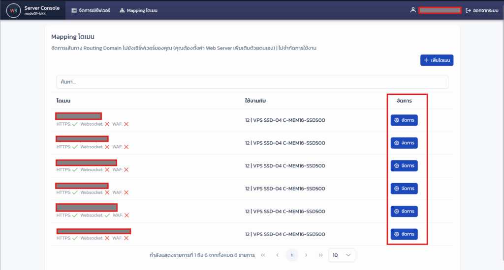 คลิกที่ จัดการ ที่โดเมนที่ต้องการจัดการ